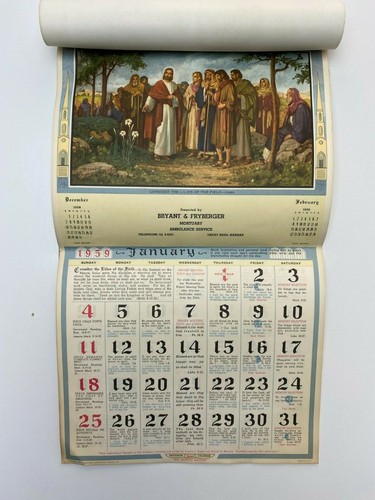1959 Sacred Hearts Funeral Home Calendar Bryant Fryberger Great Bend Kansas Ebay
