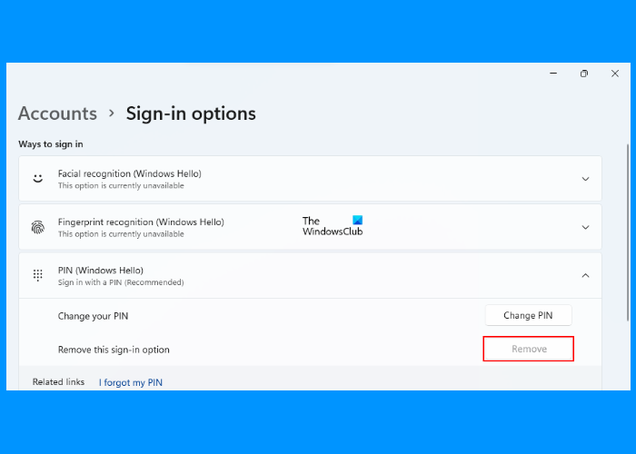 Windows Hello Pin Remove Button Greyed Out